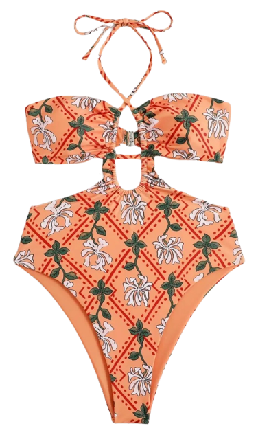 Oλόσωμο μαγιό με δεσίματα και άνοιγμα στο μπούστο πορτοκαλί