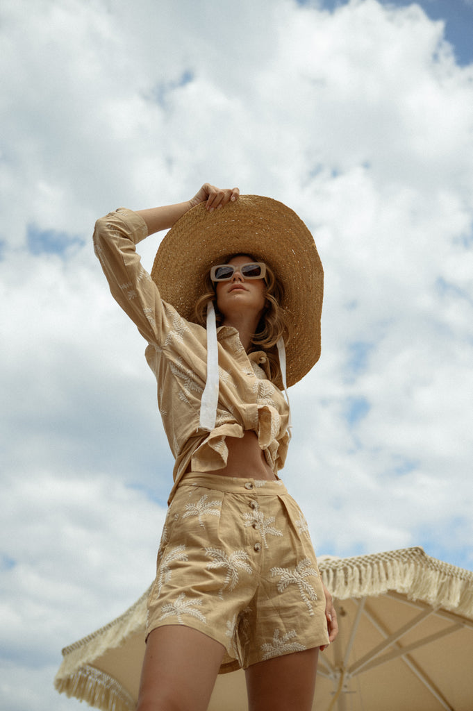 Palm Tree Shirt - Πουκάμισο Μπεζ με κέντημα