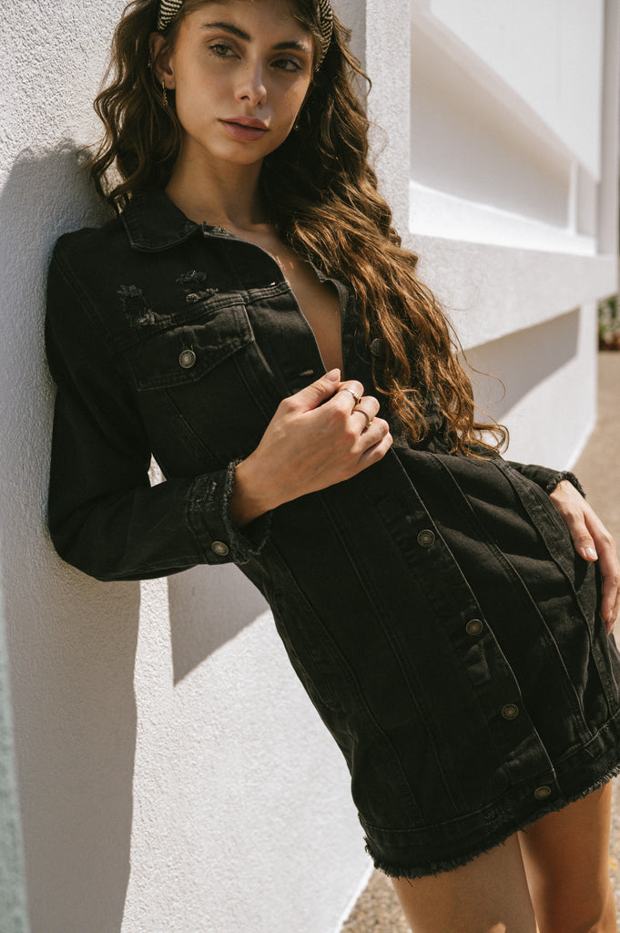 Sometimes a Dress Jacket - Μαύρο Μακρύ Τζίν Τζάκετ