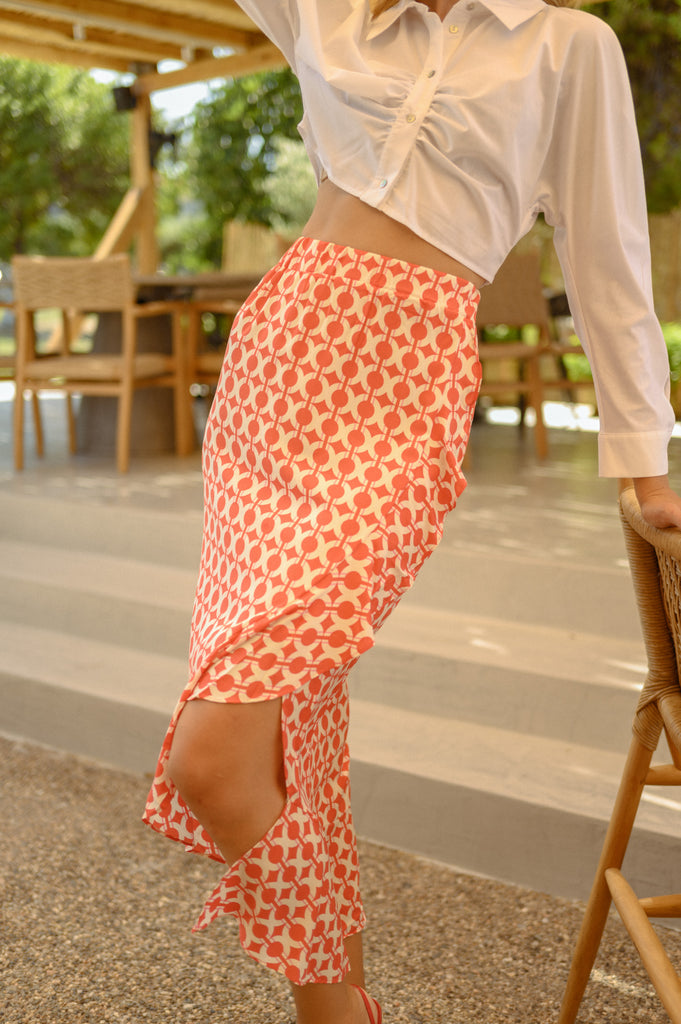 Tangerine Skirt - Ασύμμετρη Φούστα με μοτίβα