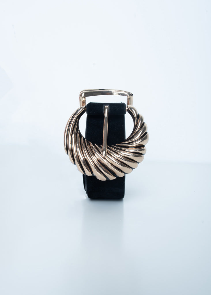 Zina Belt - Μαύρη ζώνη τύπου suede και χρυσή τόκα vintage