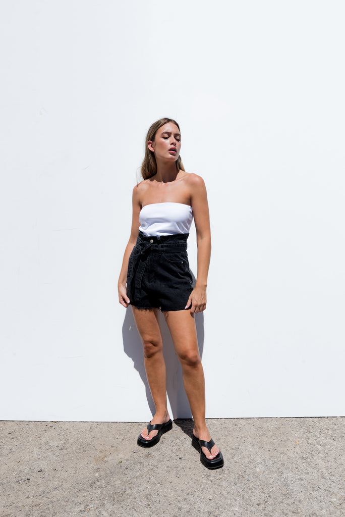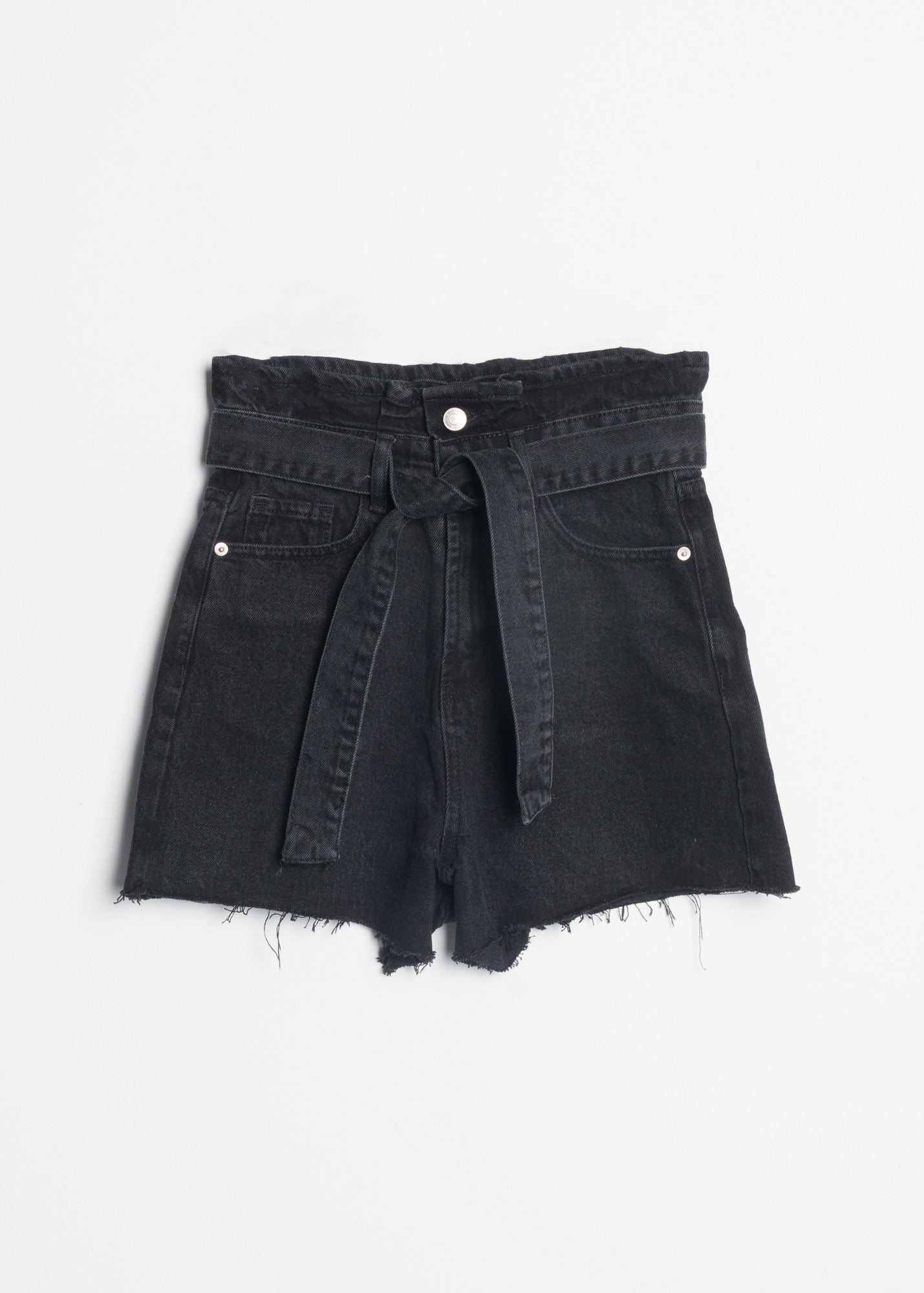 Ψηλόμεσο σορτς τζίν σε Α γραμμή με ζώνη και τσέπες