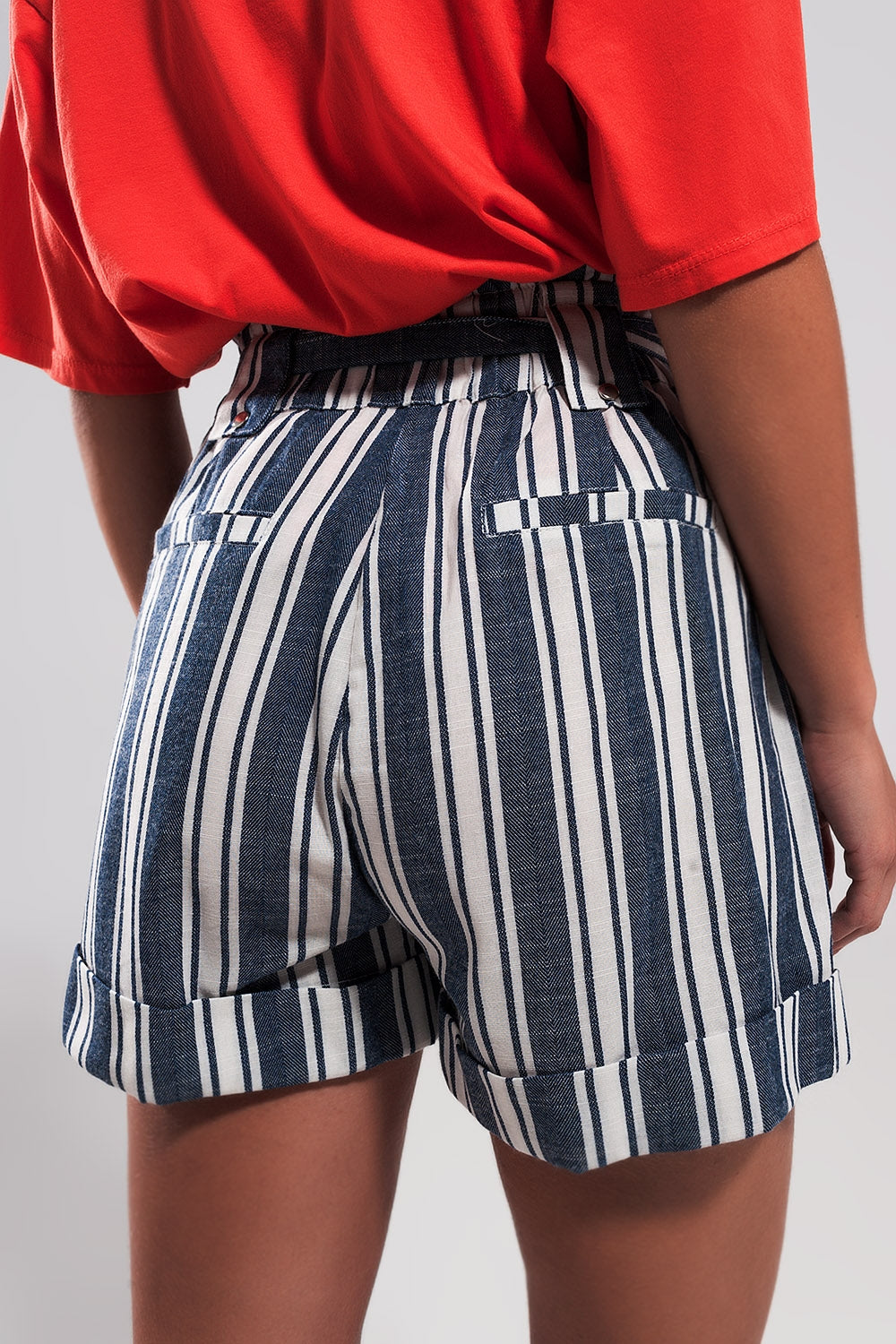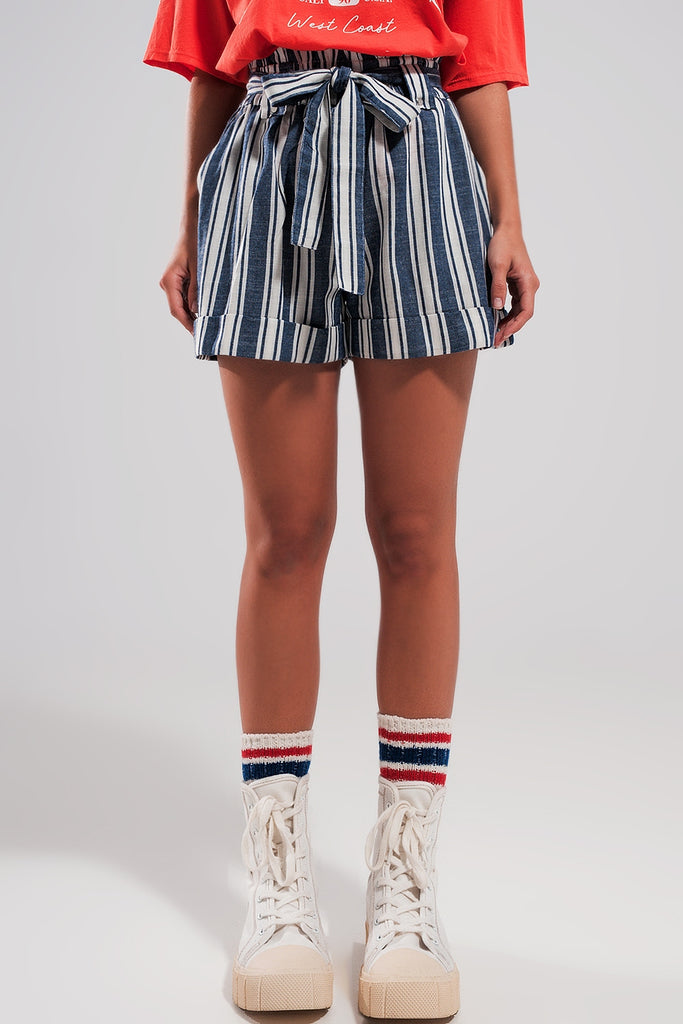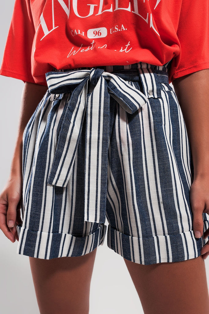 Ψηλόμεσο σόρτς με ζώνη και ρίγες navy σε Α γραμμή
