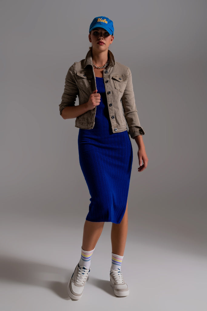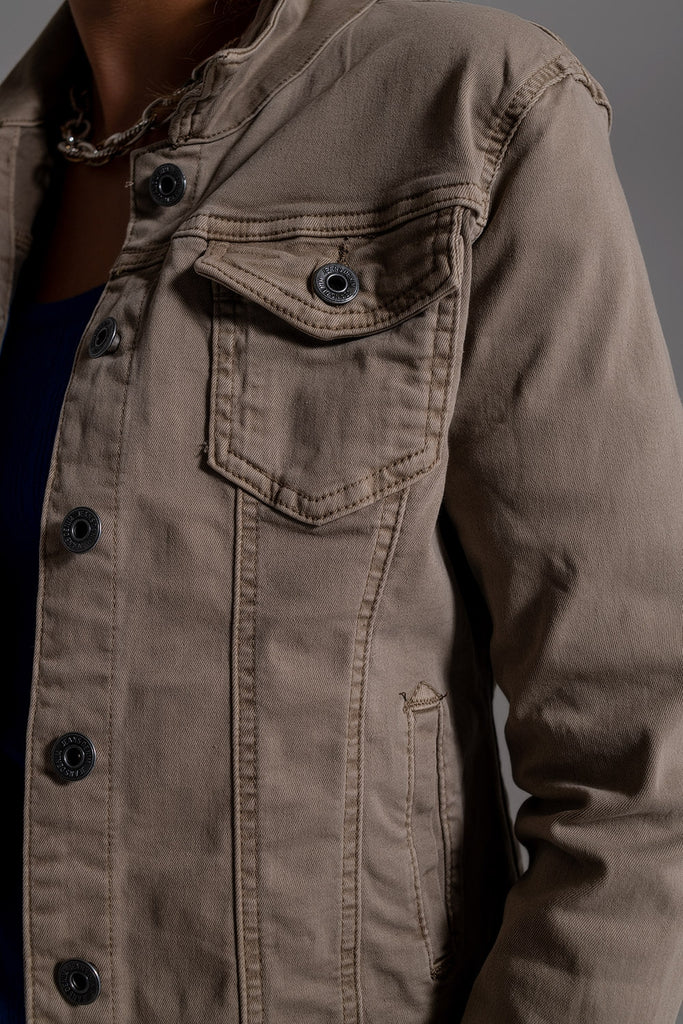 Basic Denim Jacket With Pockets in Beige