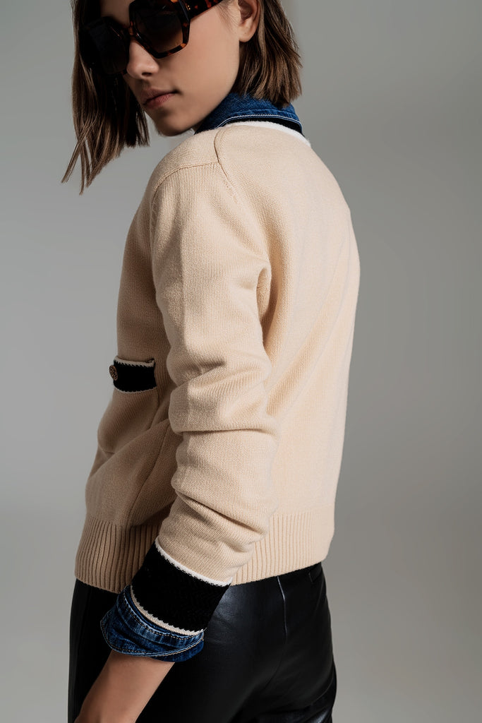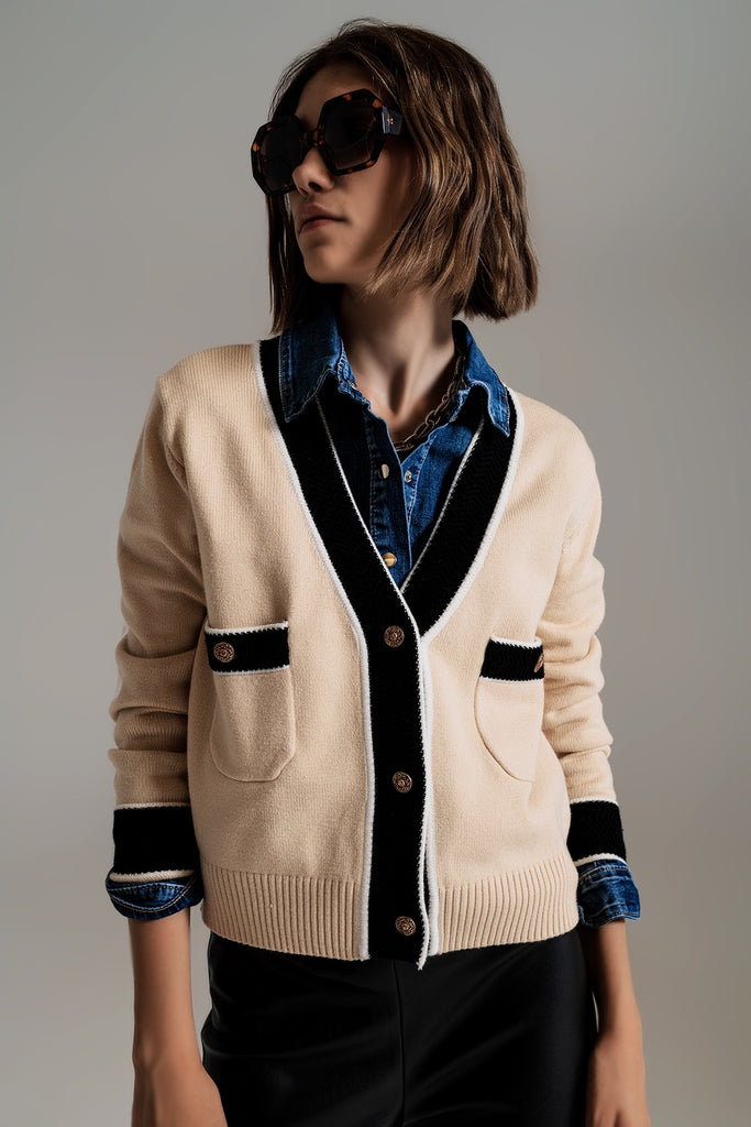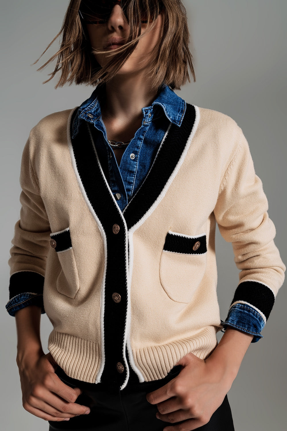 Subcategory: Cardigan. Neck: Wide V-neck. Sleeves: Long Sleeves. Fit: Standard fit. Style: Romantic. Fabric: Chunky knit. Pockets: Chest pockets. Zipper: Button placket. runs true to size. S.