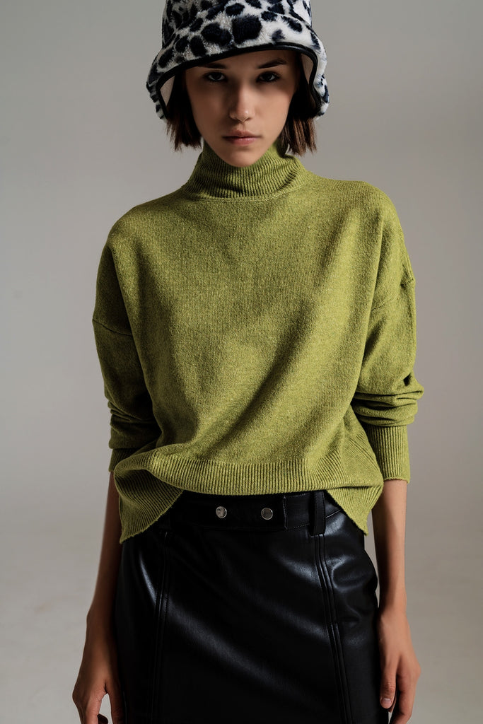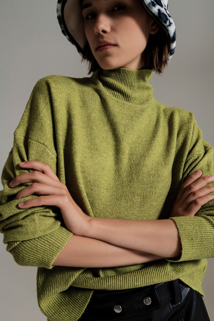 Subcategory: Sweaters . Neck: Turtleneck neckline. Sleeves: Long Sleeves. Fit: Relaxed fit. Style: Casual. Fabric: Chunky knit. runs true to size. S.