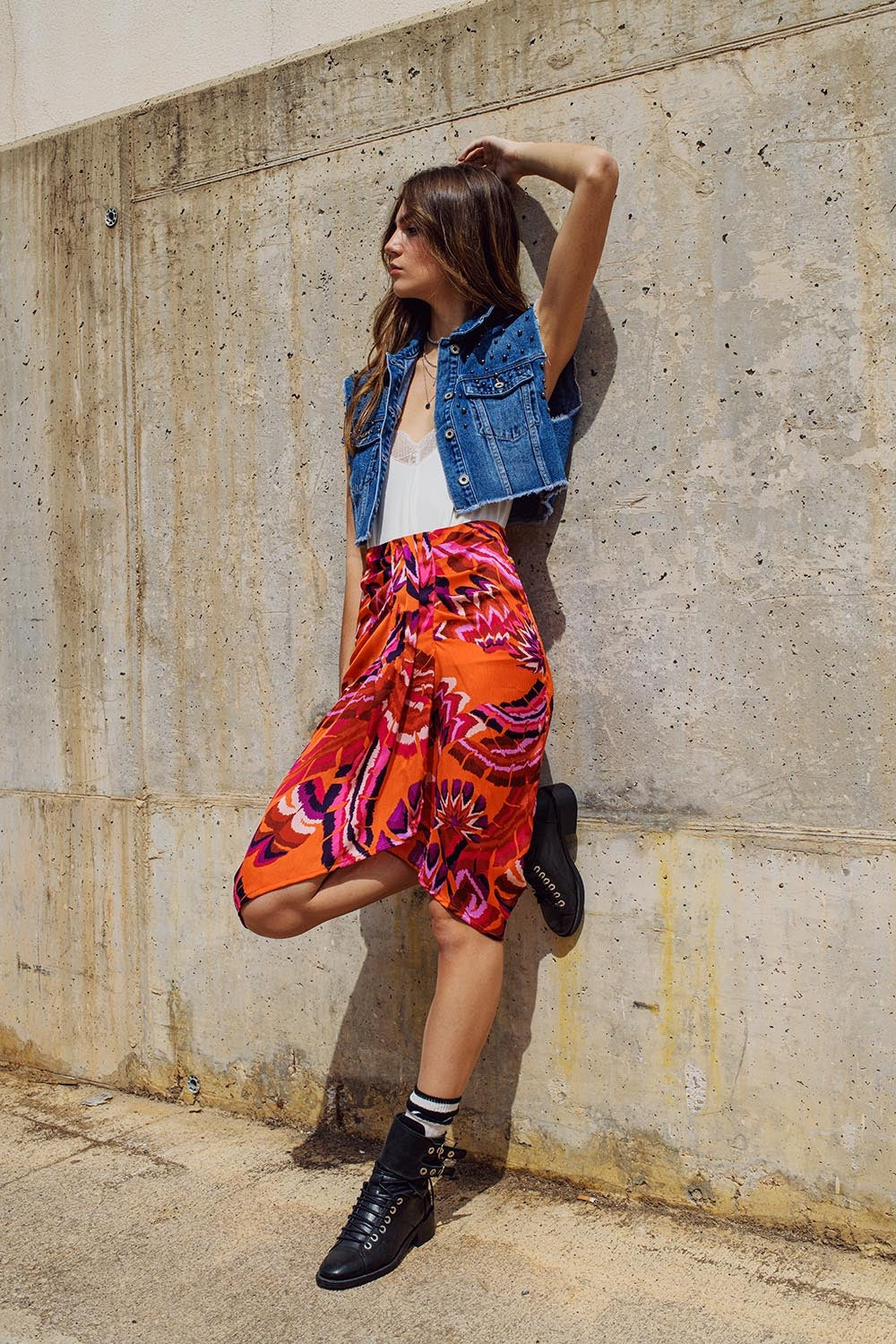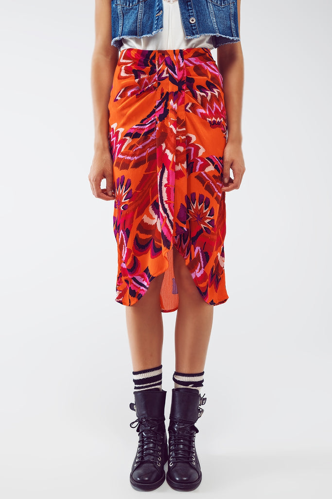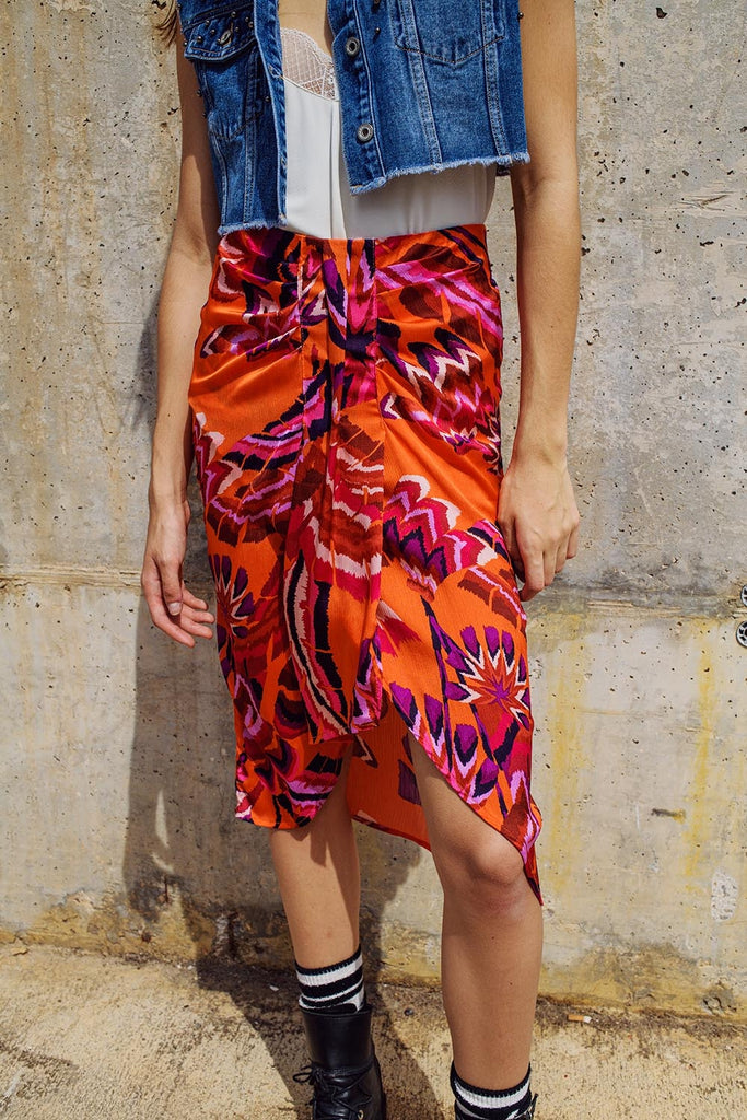 Length: Midi. Subcategory: Skirt. Print: Abstract print . Fit: Wrap front. Style: Casual. Detail: Ruched details. Fabric: Lightweight woven fabric . Waist: Elastic waist. runs true to size. S.