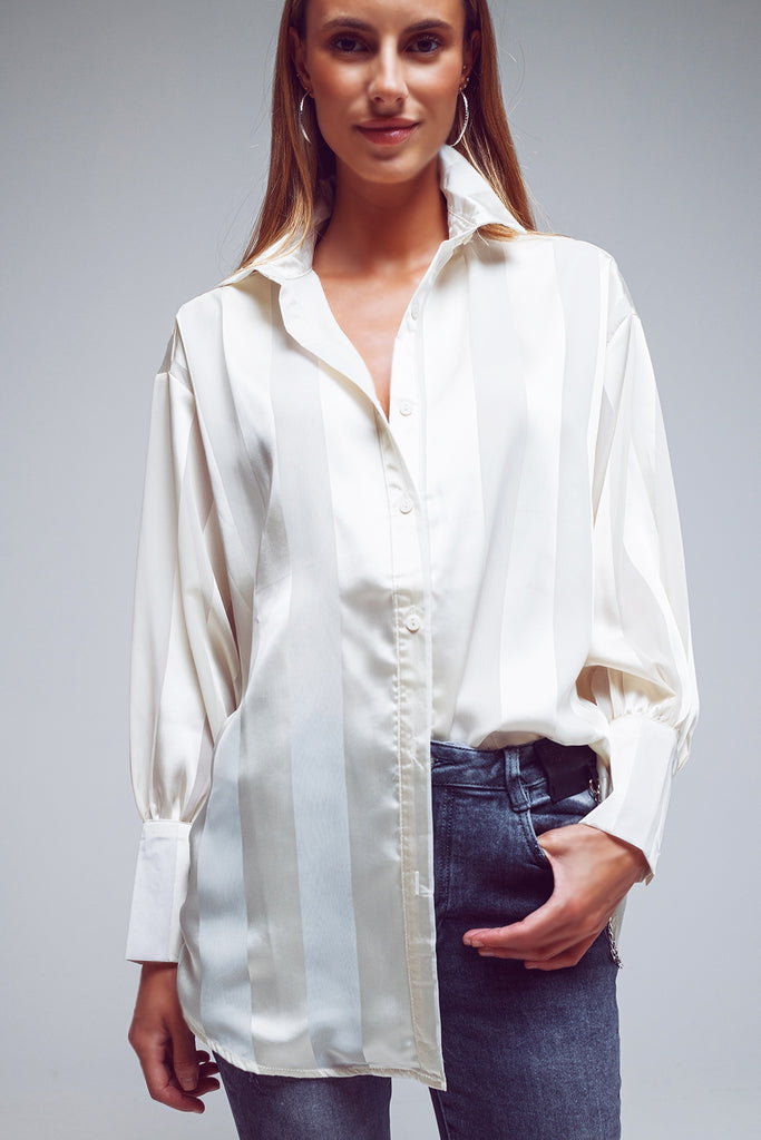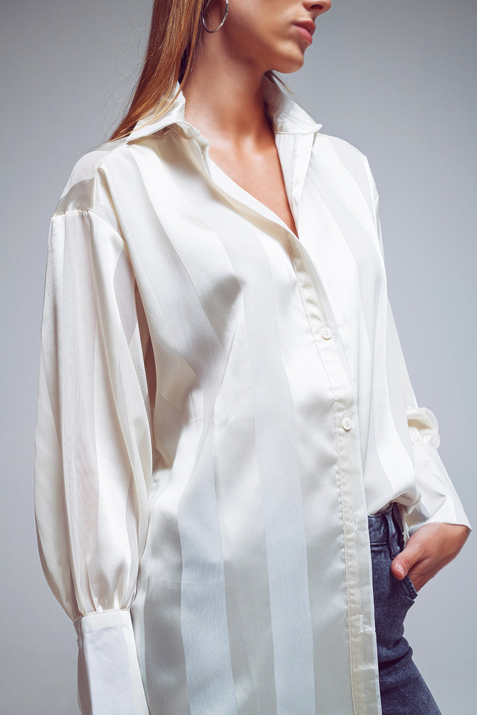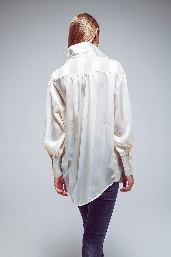Oversized Shirt With Stripped Design And Balloon Sleeves in Cream