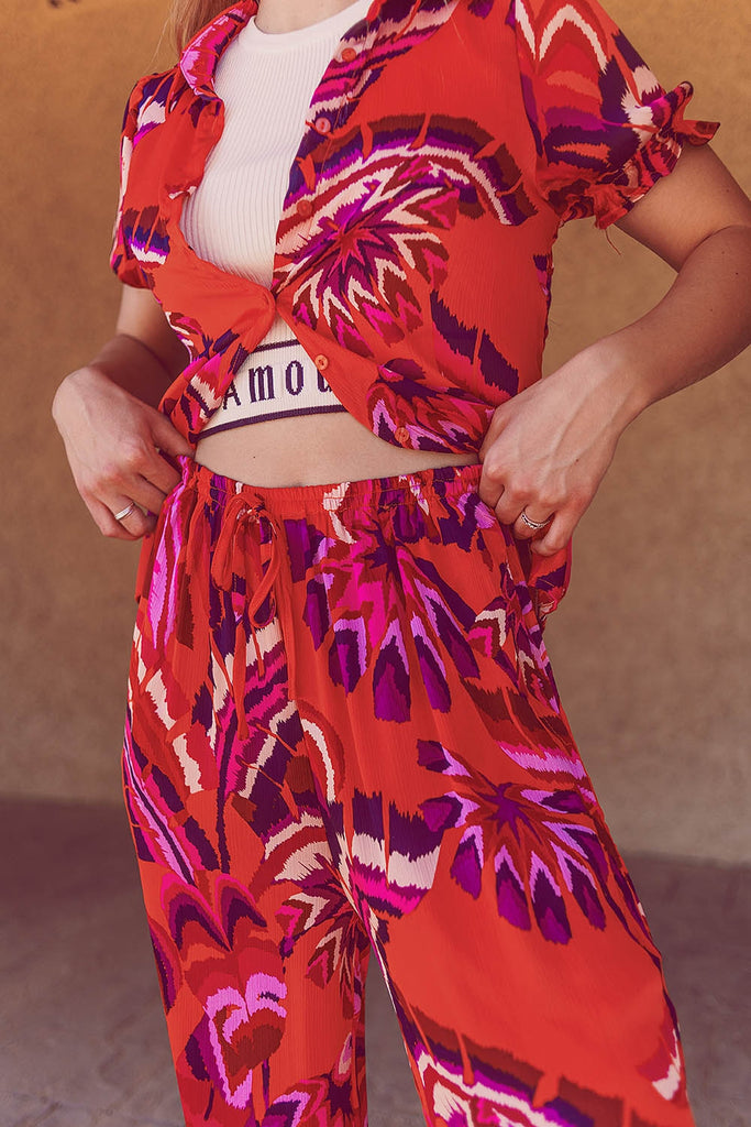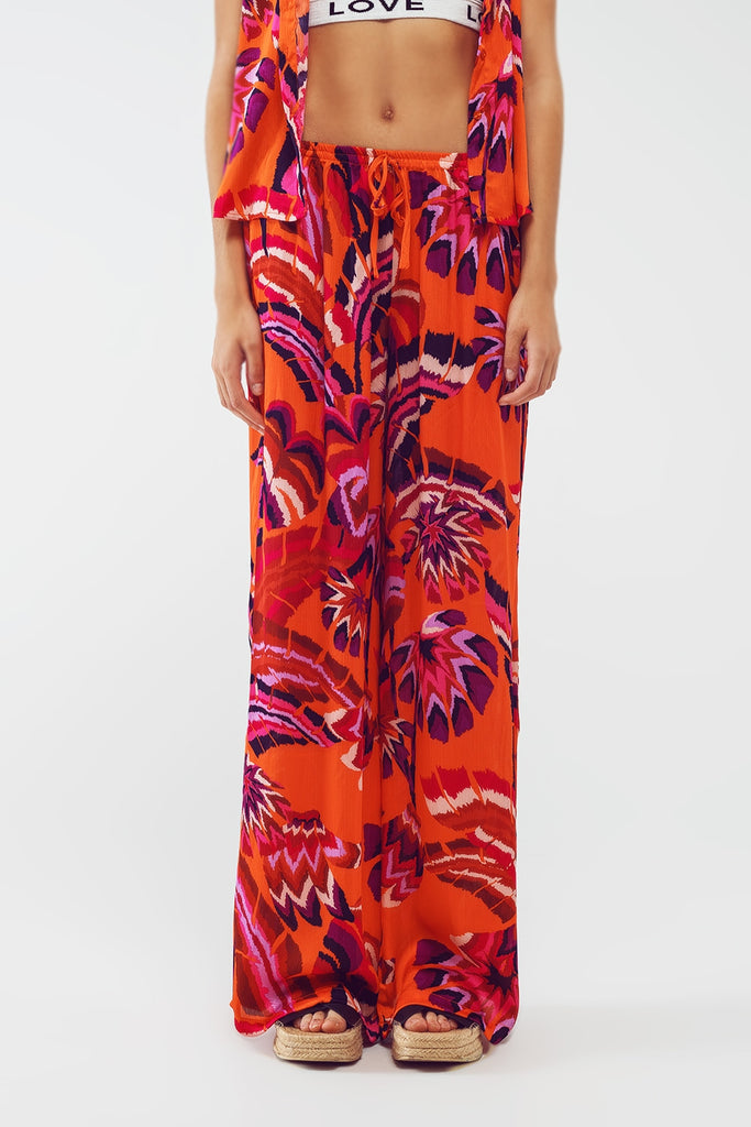 Length: Full length. Subcategory: Pants. Print: Abstract print . Fit: Relaxed fit. Leg: Straight. Style: Casual. Fabric: Lightweight woven fabric . Pockets: Side pockets . Product details: Knot detail. Waist: Elastic waist. runs true to size. S.