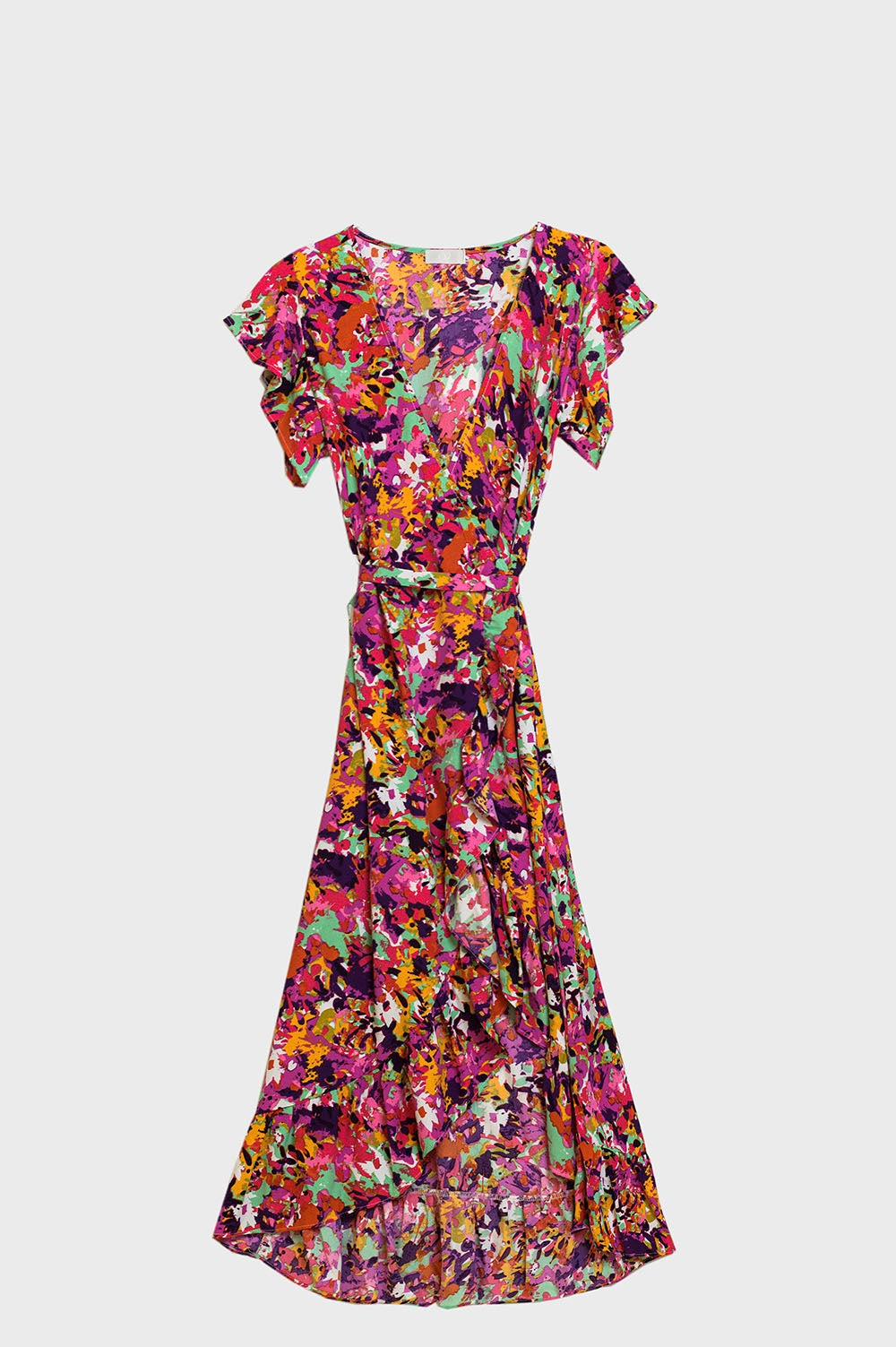 Length: Maxi length. Subcategory: Dress. Neck: Wide V-neck. Sleeves: Sleeveless style. Print: Abstract print. Style: Daily. Fabric: Chiffon. runs true to size. S.