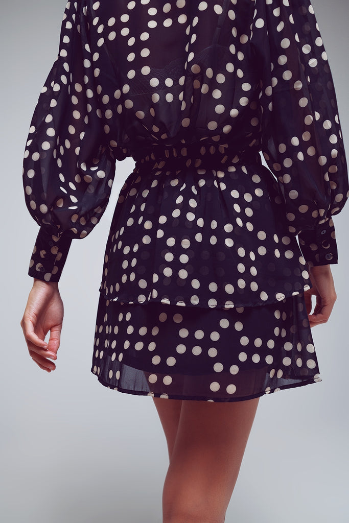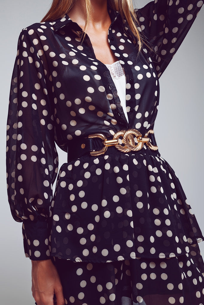 Semi Sheer Polka Dot Shirt With Voluminous Sleeves in Black