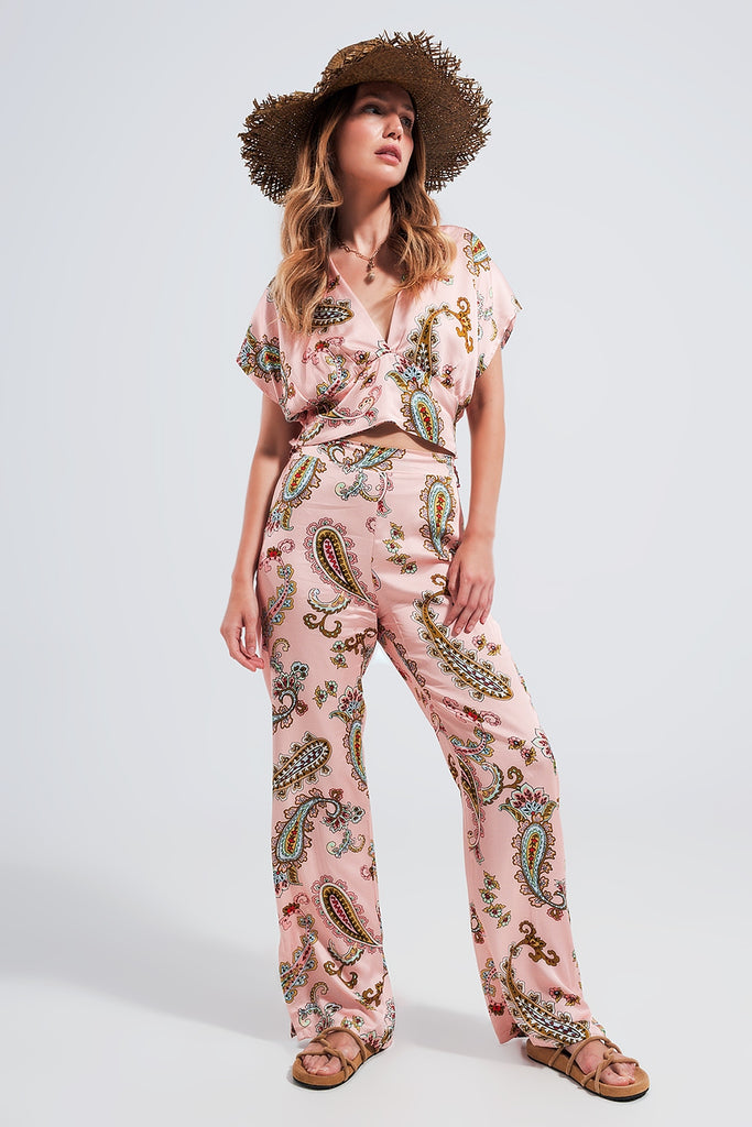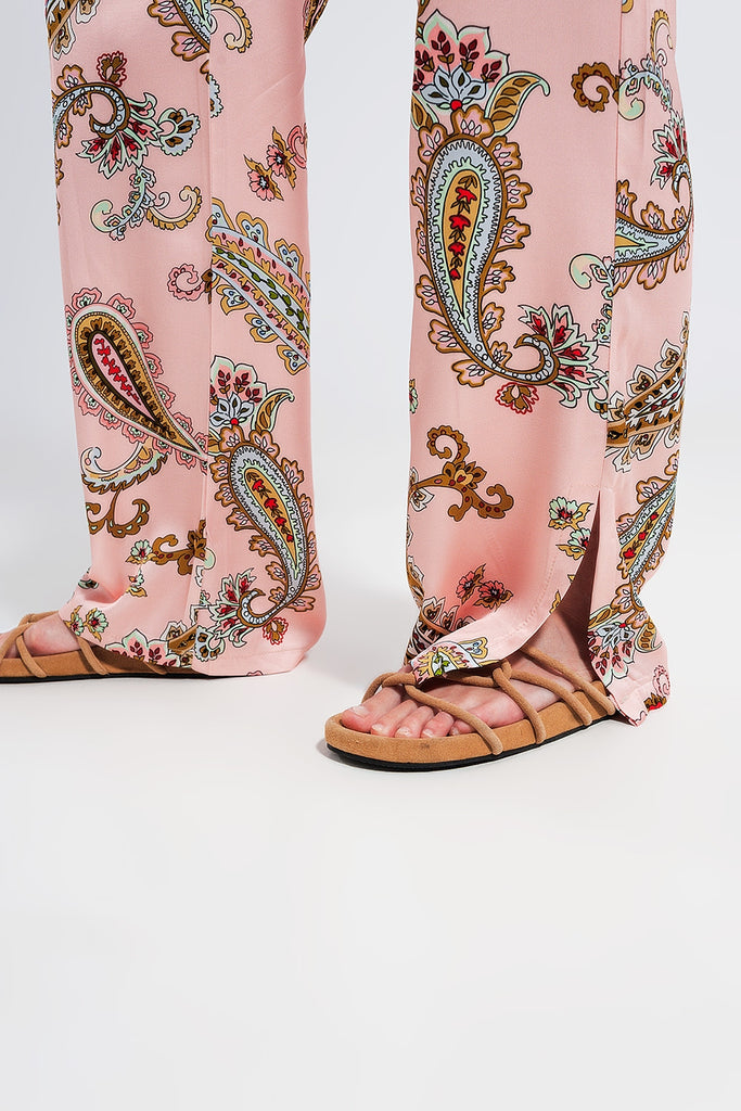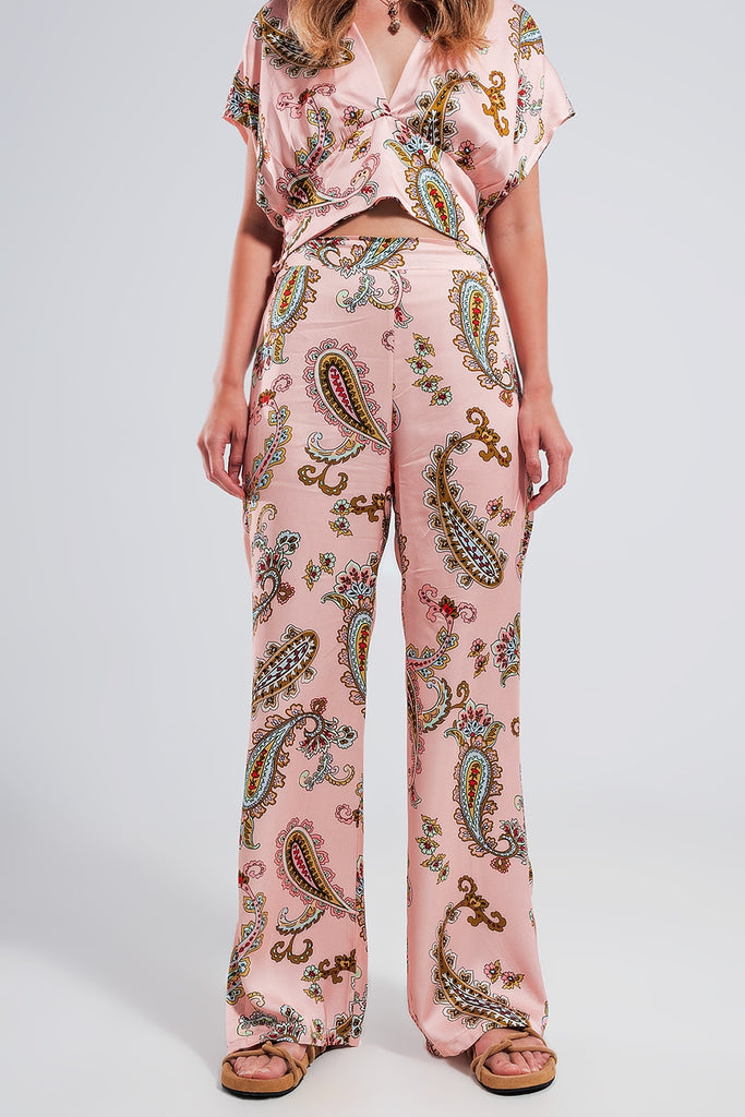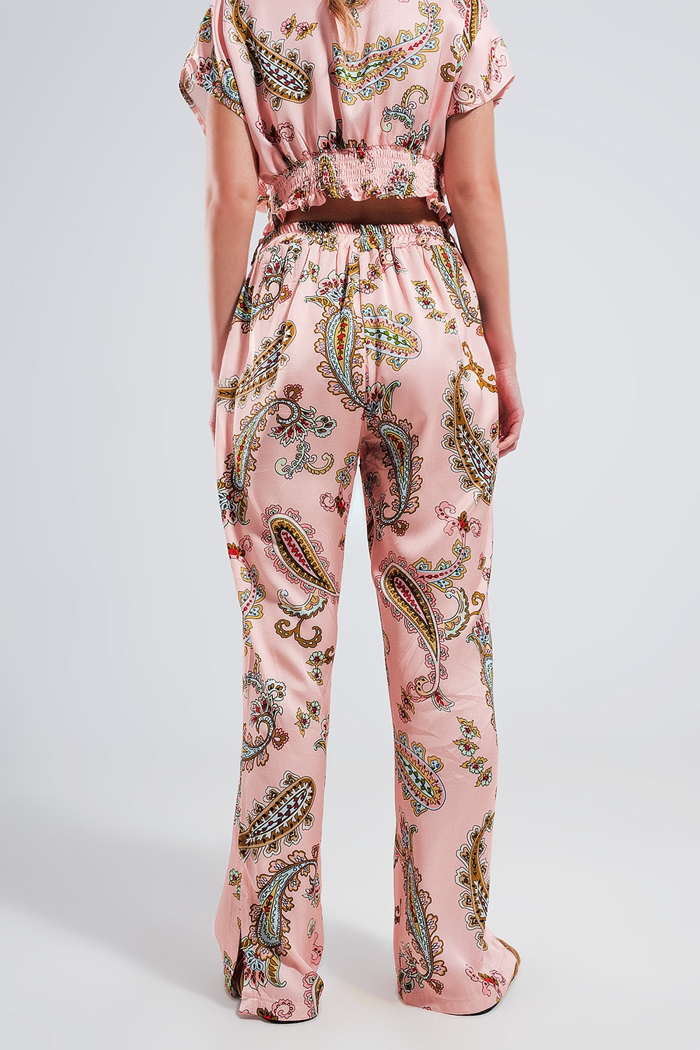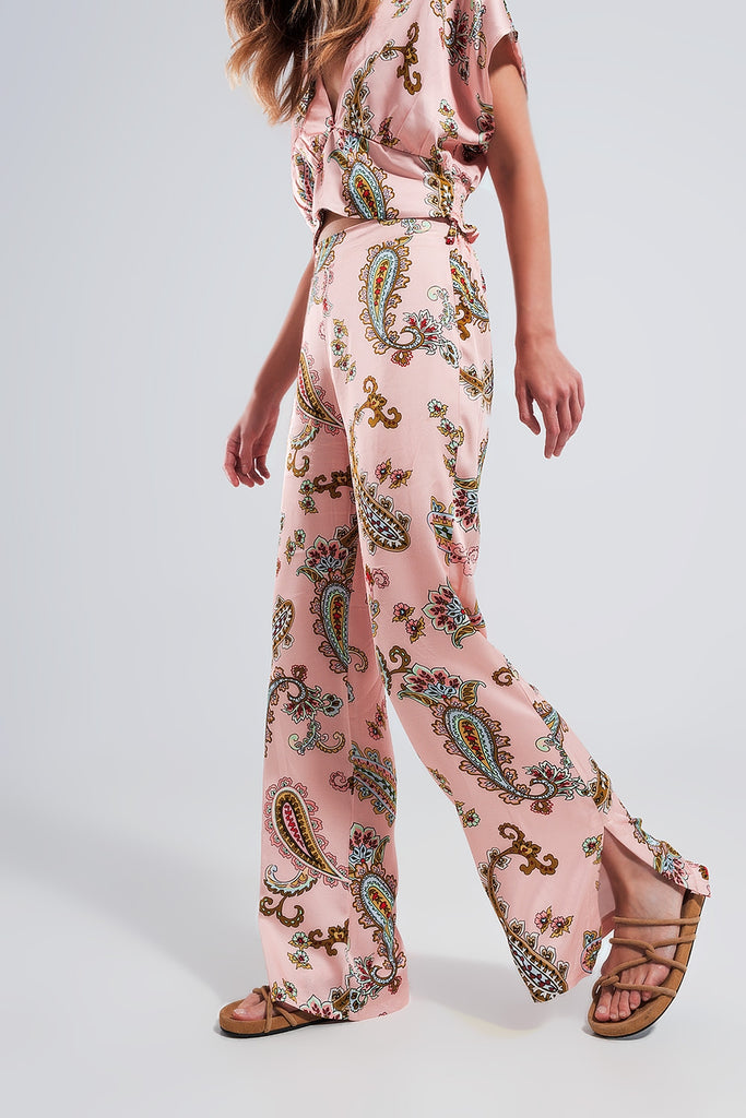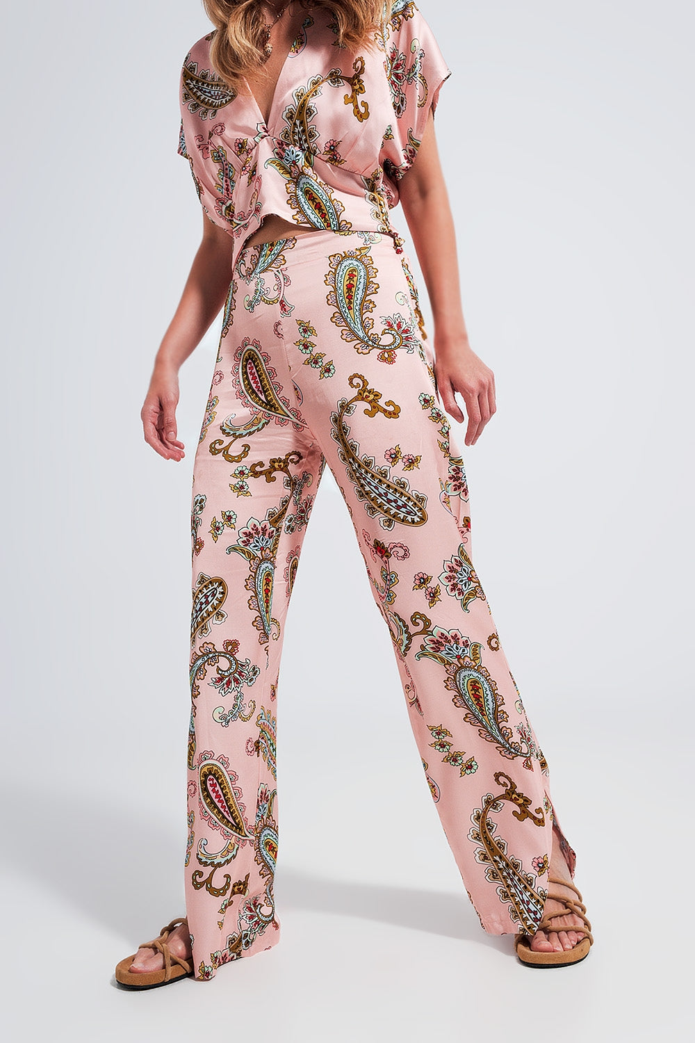 Length: Full length. Subcategory: Pants. Print: Paisley print. Fit: Relaxed fit. Leg: Wide leg. Style: Boho. Fabric: Lightweight woven fabric . Pockets: Side pockets . Seam: Side splits. Product details: Functional pockets. Waist: Stretch-back waist. runs true to size. S.
