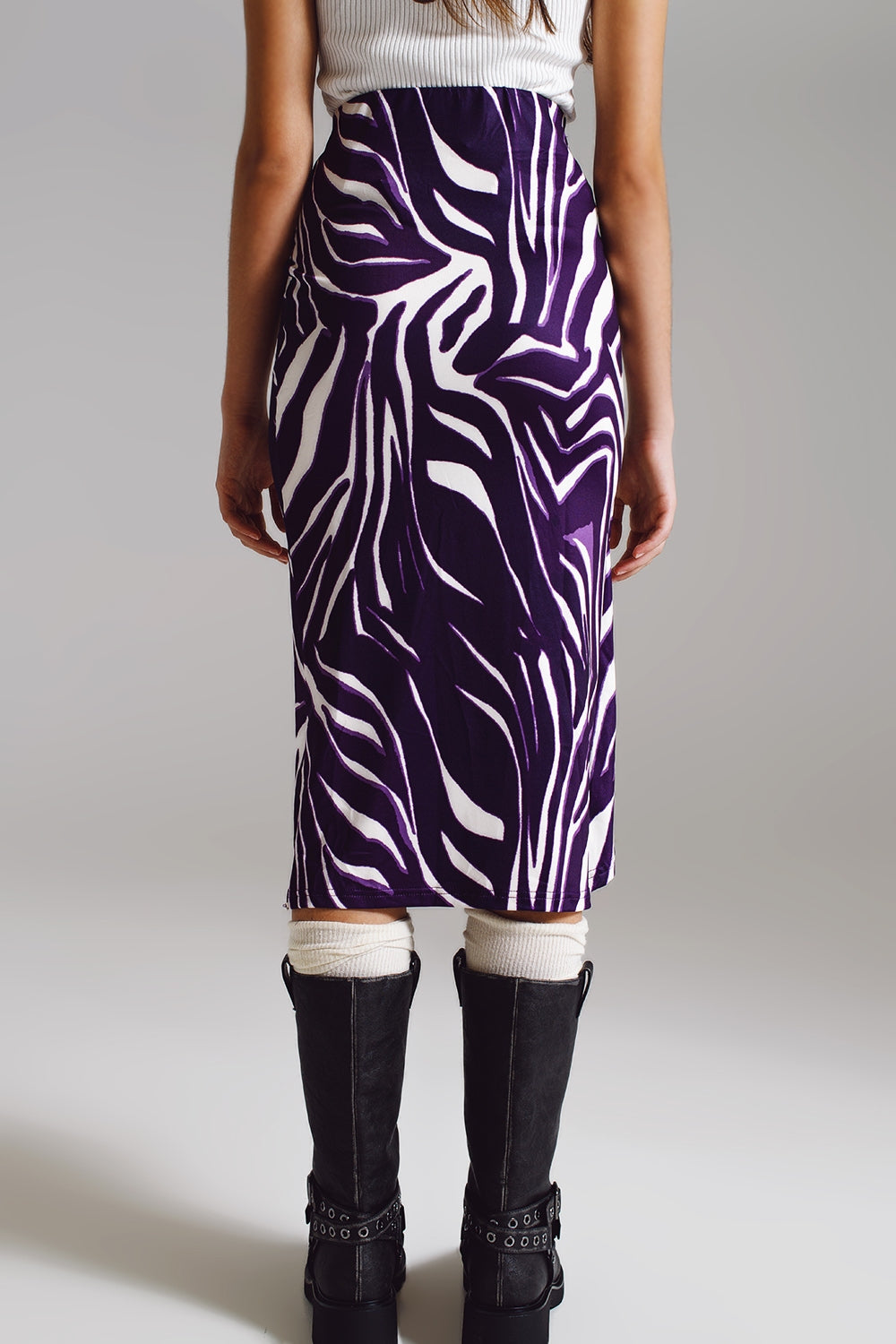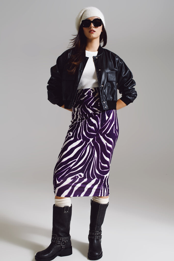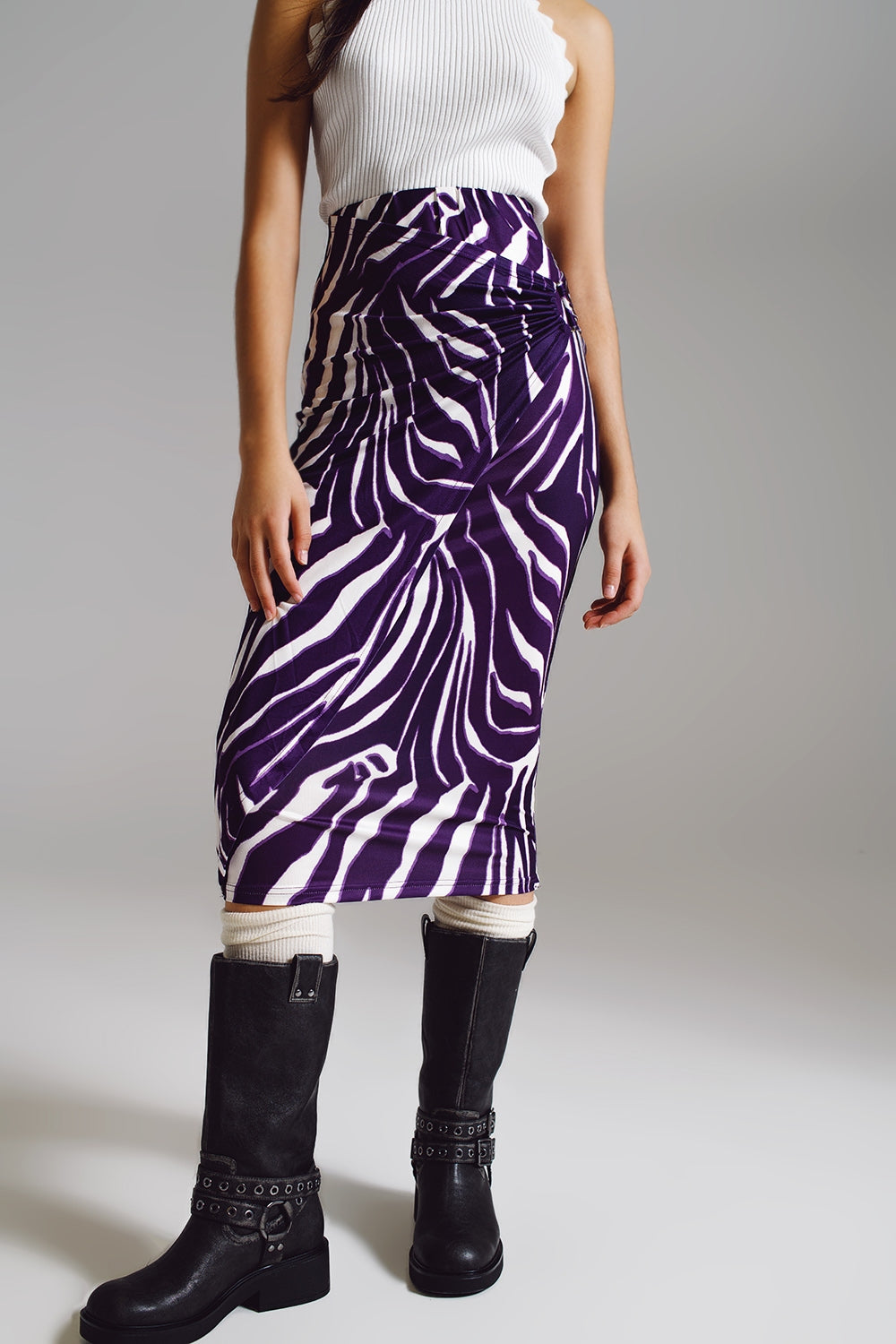 Wrap skirt with gathered detail at the side in Purple and Cream Zebra Print